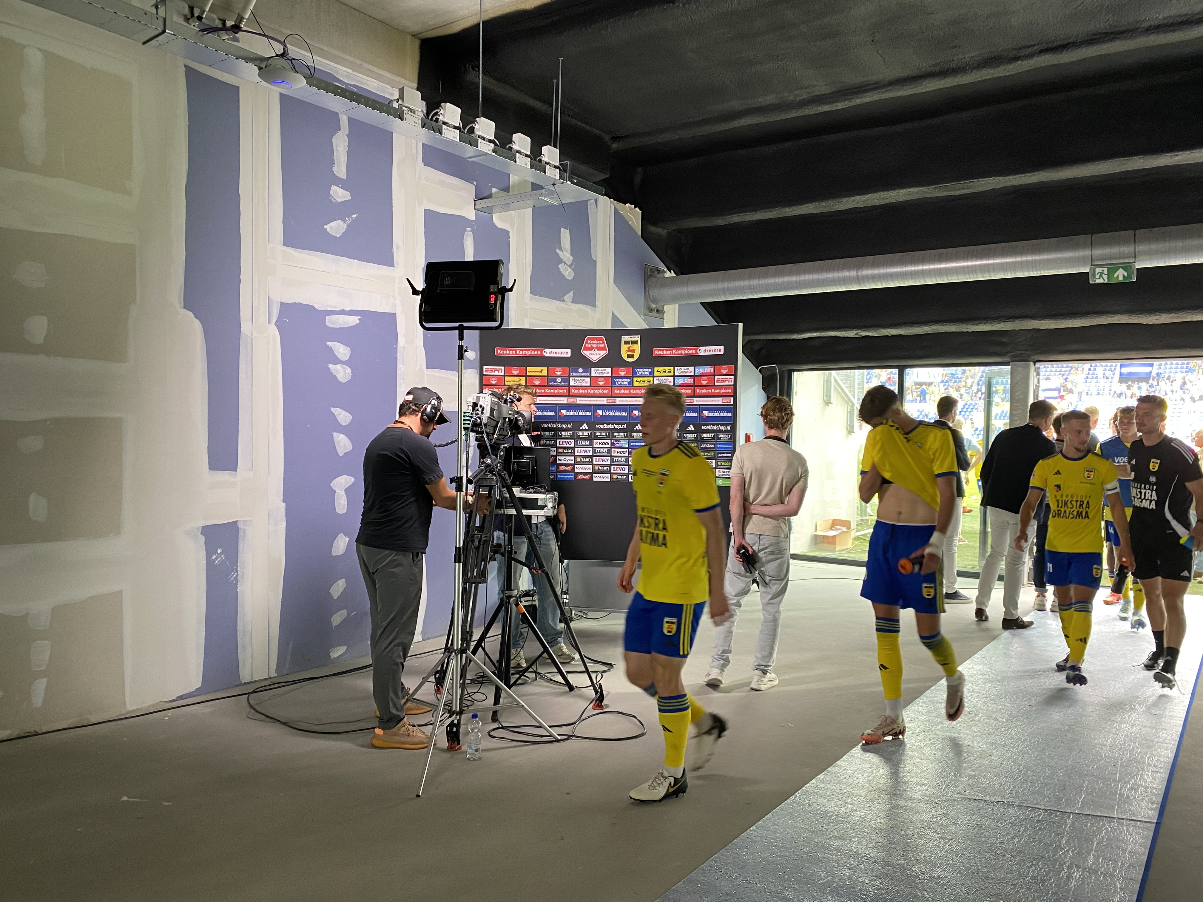 Een eerste wedstrijd in het nieuwe stadion, dat wil niet zeggen dat dat nieuwe stadion ook al af is. De persafdeling van Cambuur heeft ons dagen voor de wedstrijd al voorbereid dat het stadion nog niet optimaal in gebruik is. Het blijkt een fraai eufemisme, want in het hoofdgebouw is nog niets af. Door louter betonnen ruimtes banen we ons een weg naar de nok van het stadion, waar de geïmproviseerde perstribune zich bevindt. Maar van binnen is het af, en dus kan er gevoetbald worden. Dat is toch het belangrijkste. Voor de fans zijn mobiele drankpunten ingericht voor een biertje, hamburger of berenburg-cola.