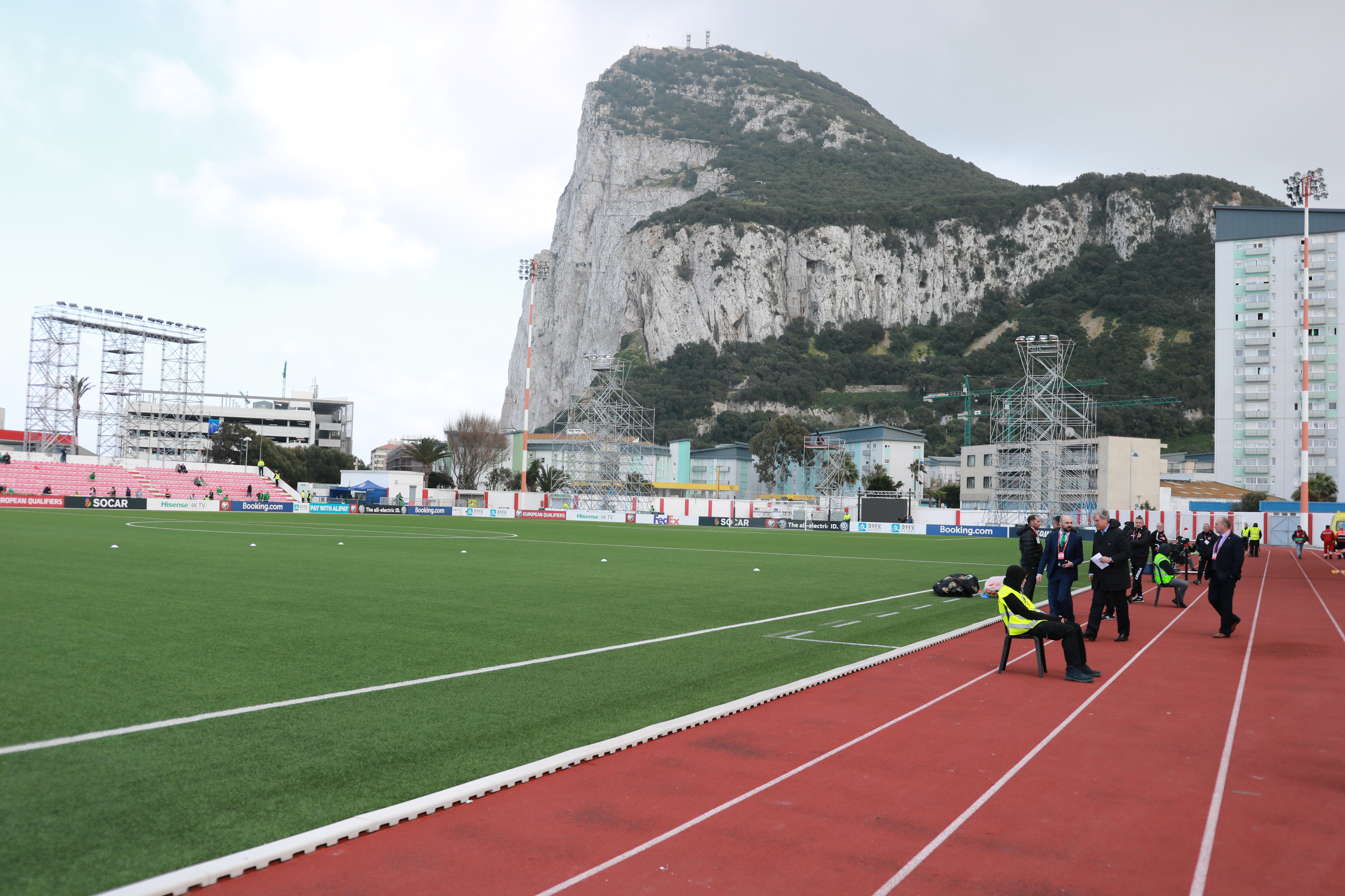 Een stadion ingeklemd tussen de zee, een landingsbaan en de rots van Gibraltar. Het Victoria Stadium - het nationale stadion van Gibraltar – is op zichzelf niet zo bijzonder, maar die ligging en het uitzicht maken alles goed. Deze week spelen de Lincoln Red Imps en FC Magpies er thuis, niet zo gek: alle Gibraltarese clubs spelen in het Victoria Stadium.