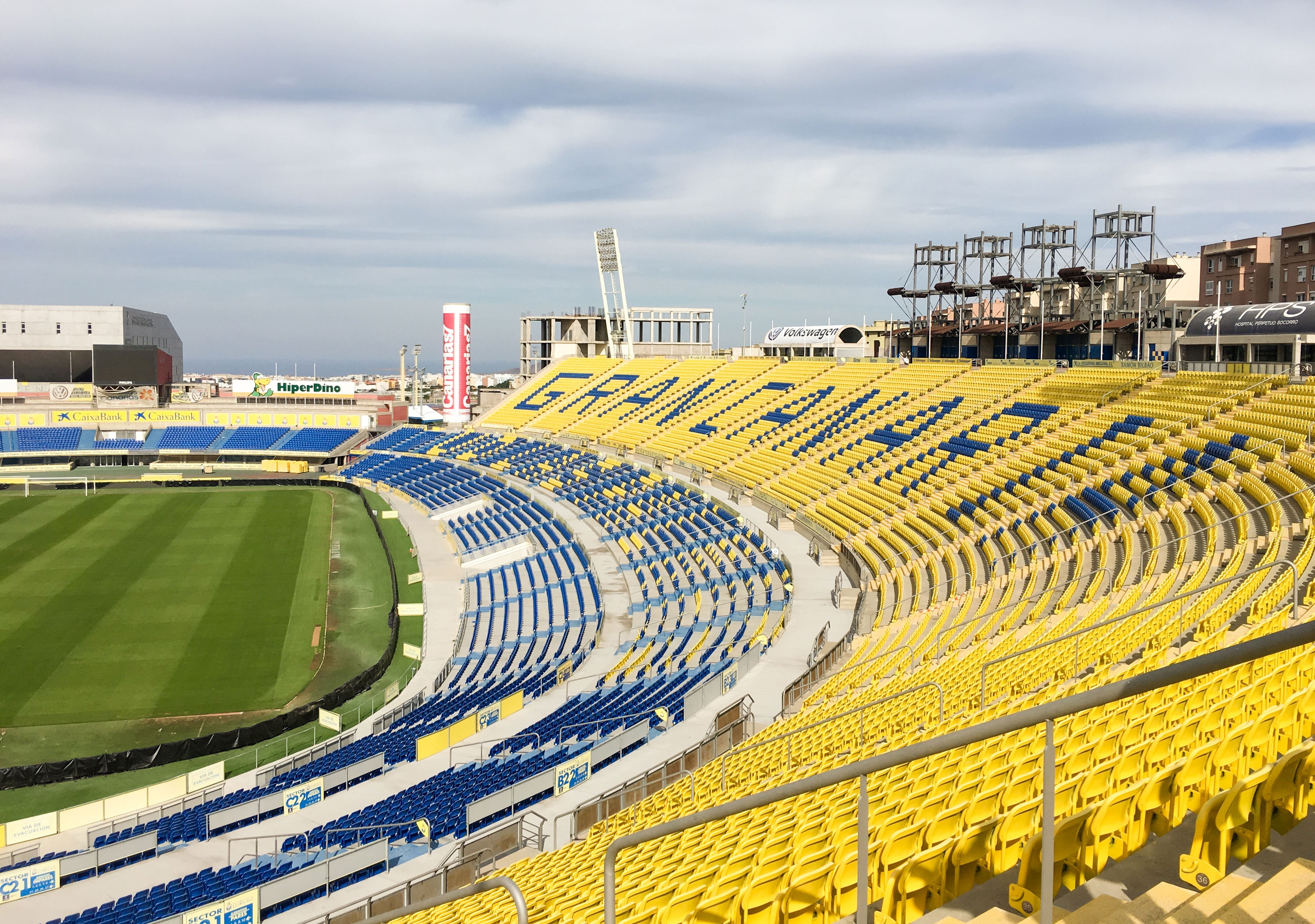 Het Estadio de Gran Canaria, gelegen in Las Palmas, werd geopend in 2003. Toen nog met een hardloopbaan, maar gelukkig is deze inmiddels verdwenen en gevuld met tribunes. Het is een prachtig open stadion met kanariegele en felblauwe stoeltjes. Vanaf de bovenste ringen heb je ook een uitzicht op de nabijgelegen appartementen in de grootste stad van de Spaanse eilandengroep.