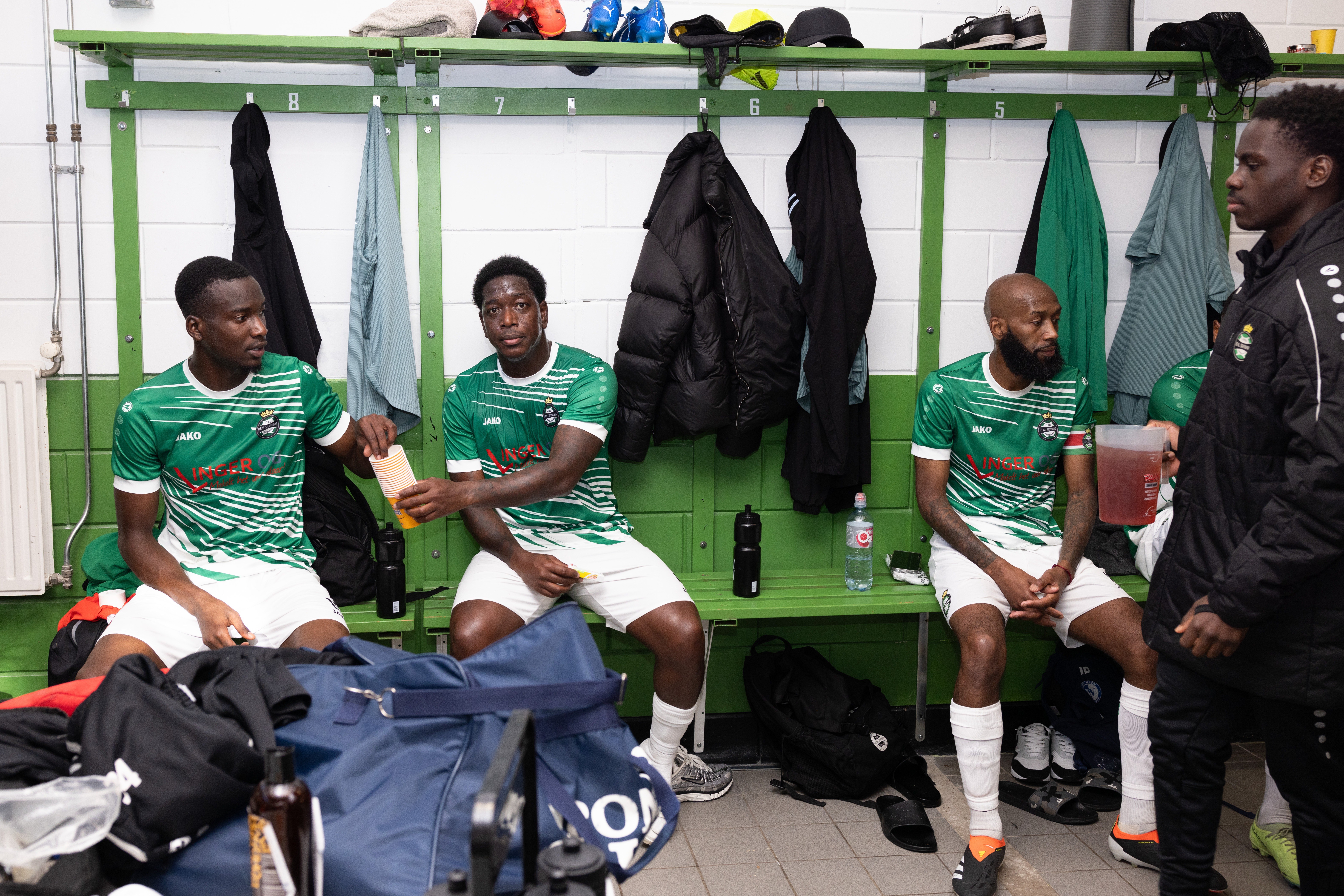 Er is ook veel te zien. Een voormalig Oranje-international die op een WK speelde, een gevluchte Oekraïner, een paar pleinvoetballers van Marokkaanse komaf en voor de rest vooral getalenteerde amateurs met Surinaamse roots en uiteenlopende haardrachten. Kaal, rastavlechten, een lange staart, ingenieuze motiefjes.