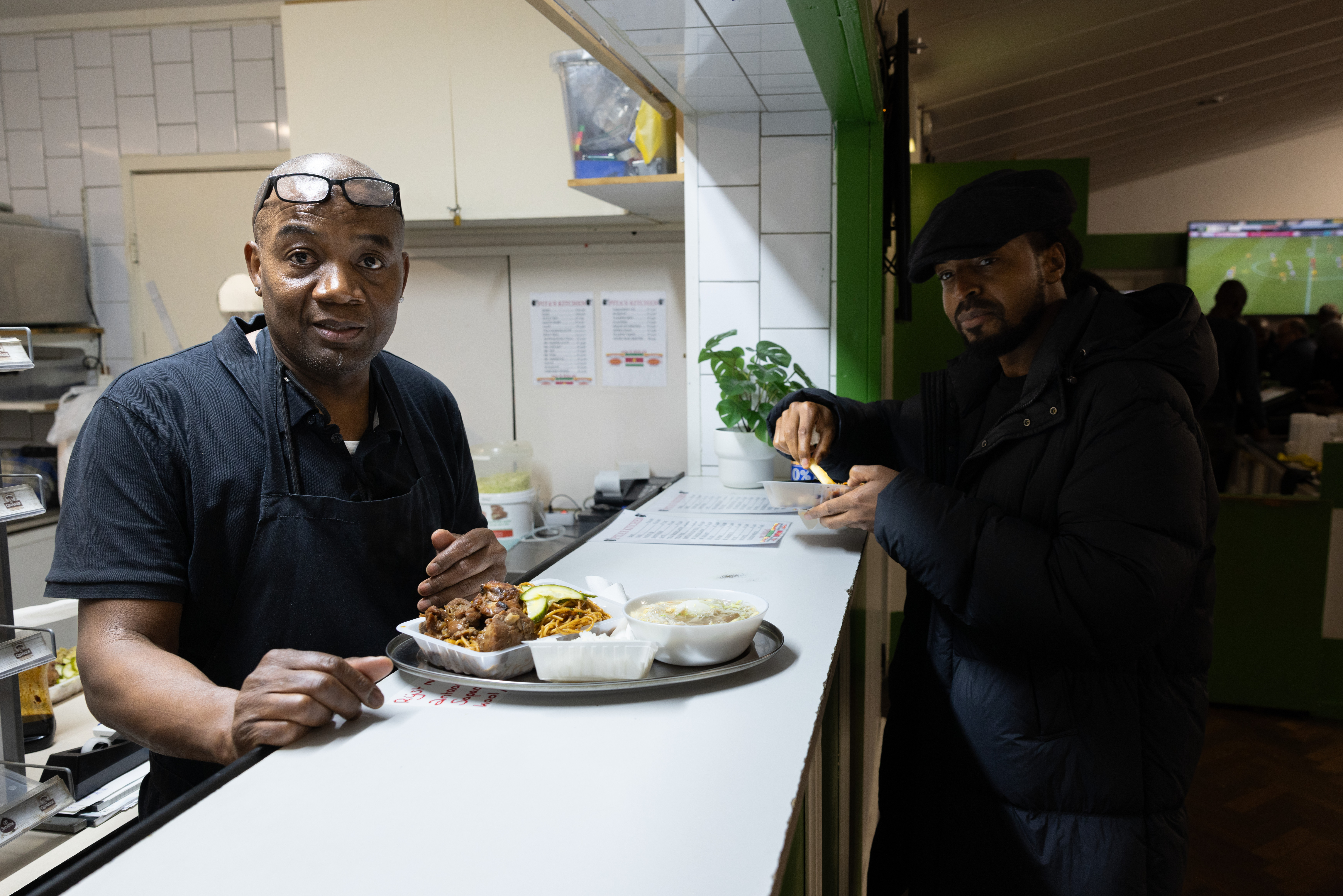 Als de wind goed staat, ruik je voetbalclub Real Sranang al vanaf de Jaap Eden-schaatsbaan die aan de andere kant van de Radioweg ligt. In een keukentje in de kantine worden van ’s ochtends tot ’s avonds saotosoep, barra’s kip en broodjes bakkeljauw bereid door een oudere en een jongere donkere man, die elkaar zonder woorden lijken te verstaan. Een lichtgetinte vrouw met een welluidende stem neemt de bestellingen op en roept je als je eten klaar is.