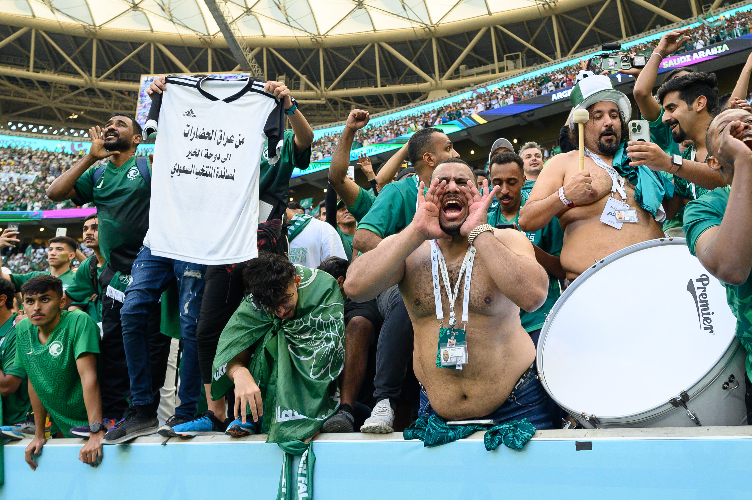 ,,Ik heb daar ook hard om gelachen, vooral dat filmpje van die Indiërs die heel vrolijk ‘It’s coming home’ zongen. Maar ik vind wel dat wij als Europeanen soms nogal denigrerend en wereldvreemd doen over wat ‘voetbalcultuur’ precies inhoudt. Alsof we daar een alleenrecht op hebben. Als je hier rondloopt, zie je heel veel mensen die ongelooflijk veel van voetbal houden. De hele Arabische wereld is zo’n beetje hier. Irakezen, Syriërs, Marokkanen, Saoedi’s, Pakistanen: ze hebben hun heel eigen beleving van voetbal. In sommige van die landen is het heel normaal om fan te zijn van pakweg Duitsland of Argentinië. Je ziet hier complete Indiase gezinnen die zich helemaal gehuld hebben in de kleuren van Brazilië. Nee, die zijn echt niet allemaal ingehuurd, dat is echt onzin. Je kunt daar badinerend over doen, maar ik vind het ook wel iets hebben. Ze zijn in de kern net zo gek op voetbal als wij.’’