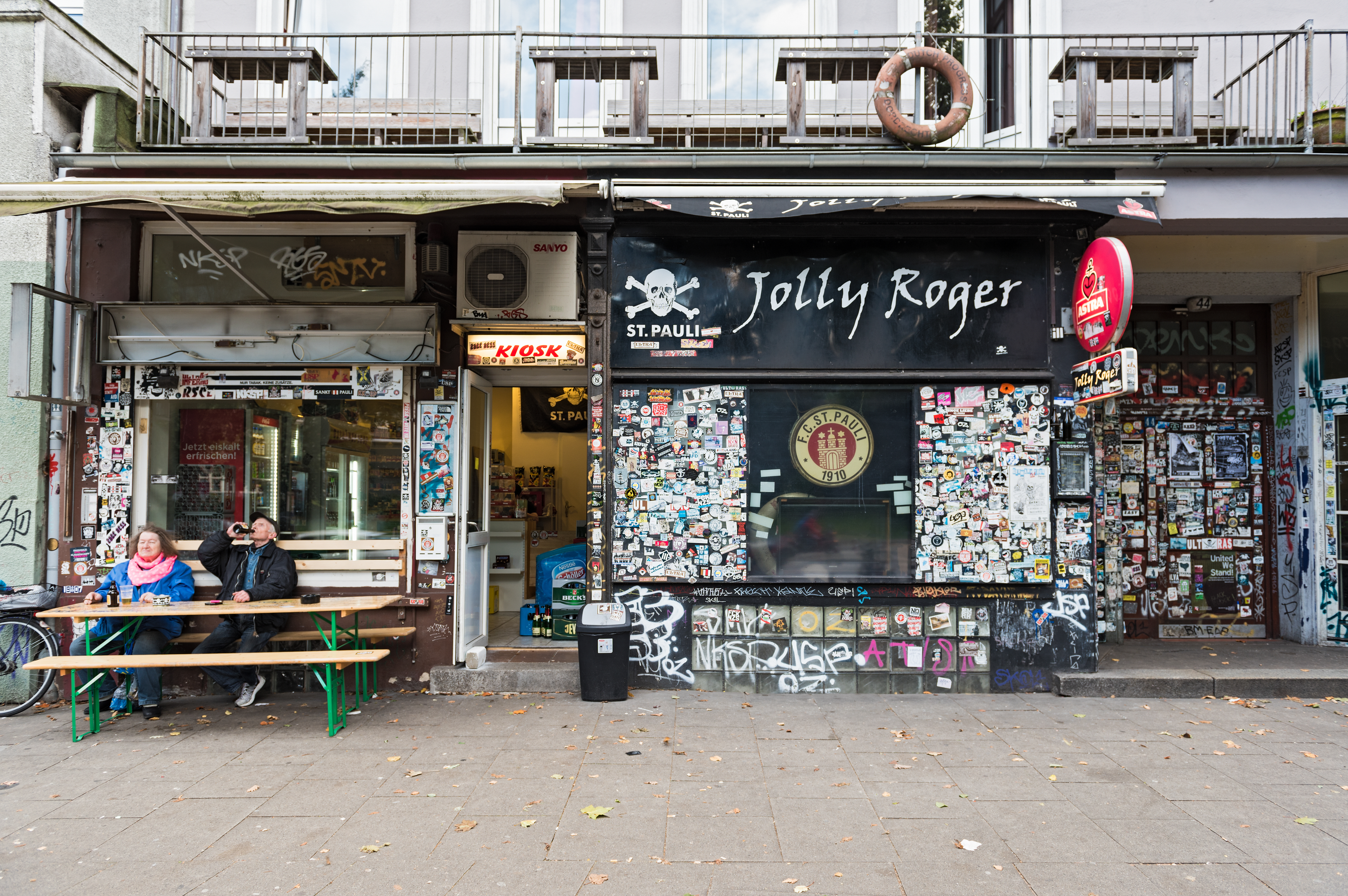 Het is misschien wel het mooist aan Millerntor: de unieke ligging, pal in de rosse buurt van Hamburg, vlakbij de vermaarde Reeperbahn. Rondom het stadion zelf verdrink je in de rock'n roll- en punkcafés, waaronder de beroemde Jolly Roger. Dit café aan de Budapester Strasse is een bekende ontmoetingsplek voor wedstrijden, en alleen al om de kleurrijk bestickerde gevel is het een bezoekje waard.