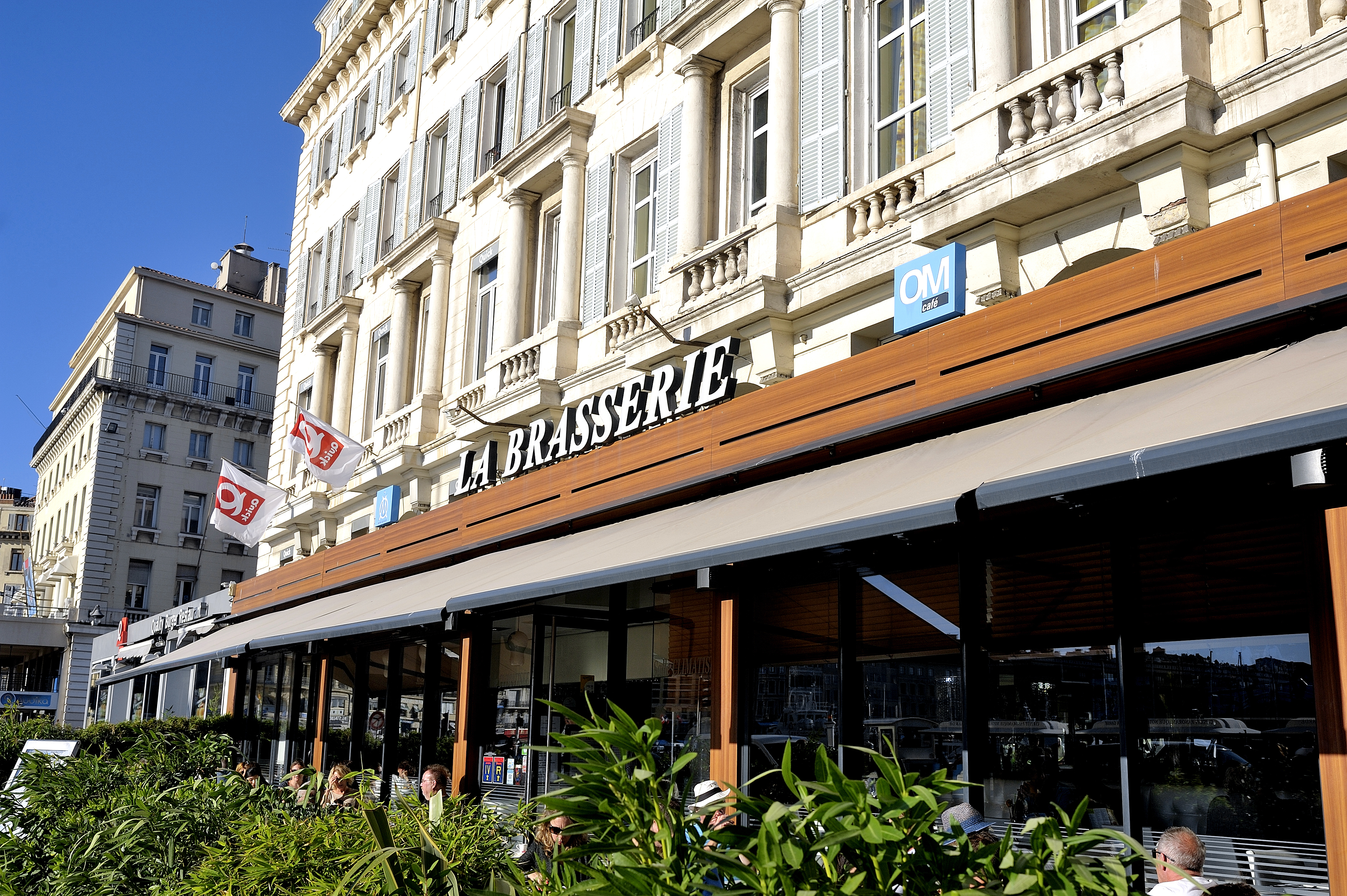 Hoe vaak zie je dat een voetbalclub een eigen restaurant heeft op de mooiste plek van de stad? Nou, in Marseille dus. In de oude haven op Quai des Belges prijkt het clublogo boven de luifel van het OM Café. De brasserie is helemaal ingericht in de stijl van L’OM, met foto’s van grootheden die het wit-blauwe shirt droegen.