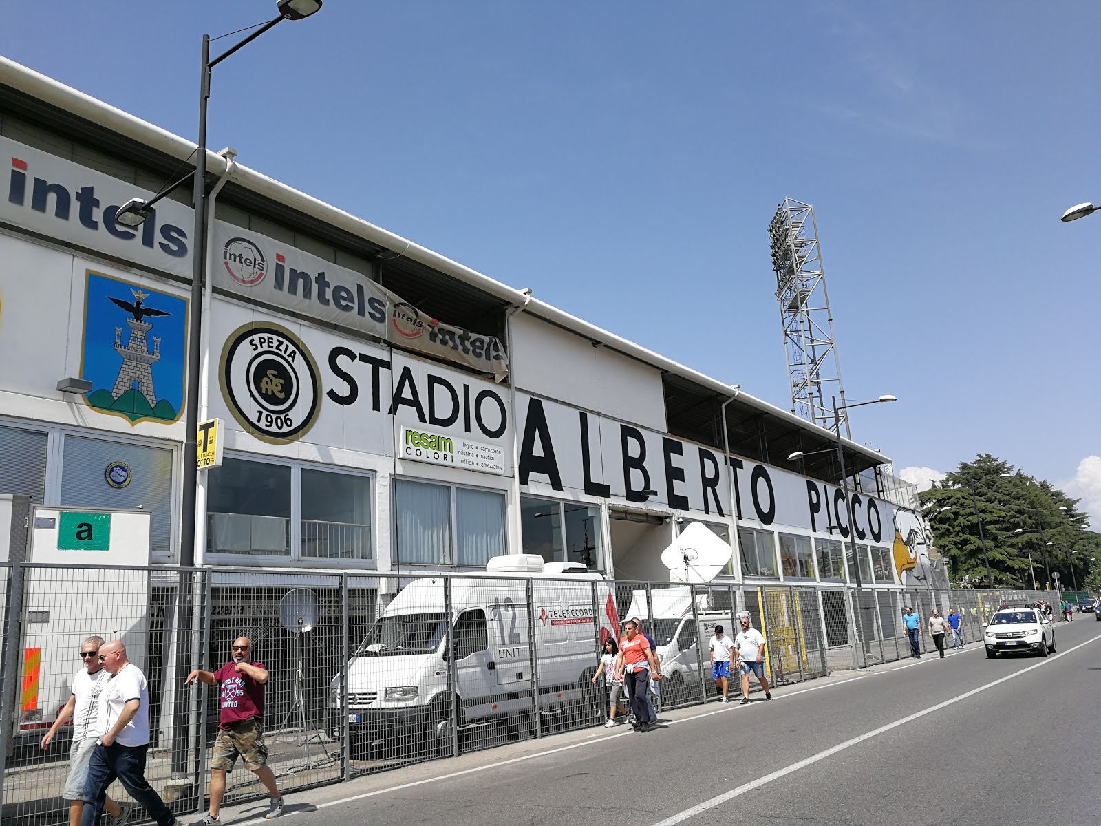Het is het met net 10.000 plaatsen het kleinste stadion van de Serie A, het Stadio Alberto Picco, direct aan de haven van La Spezia. Waar je in Italië nog wel eens ziet dat ook kleine clubs in een betonnen bak met tienduizenden plaatsen spelen, is het bij Spezia allemaal erg bescheiden. Het stadion was dermate onvoorbereid op Serie A-voetbal dat Spezia het eerste halfjaar op het hoogste niveau thuis speelde in Cesena, meer dan 300 kilometer verderop.